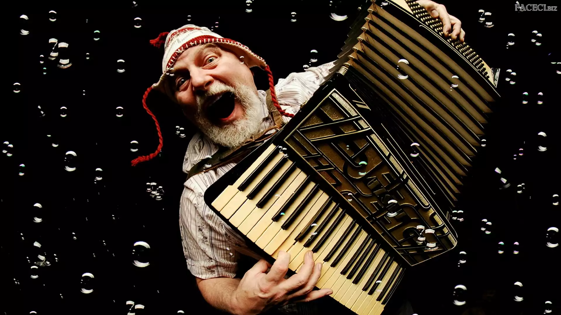 Akordeon, Mężczyzna, Tło, Czarne, Czapka, Bańki - faceci.biz